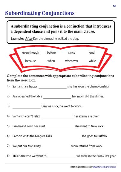 Subordinating Conjunction Worksheets
