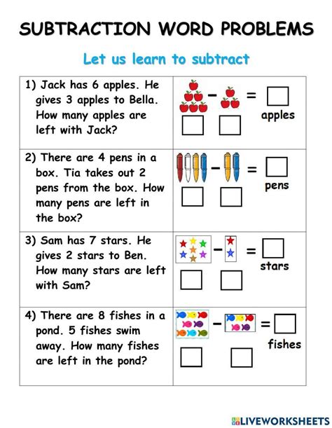 Use the blank charts and tables to boost a young learner's skill at subtraction. Web spice up your practice with our free, printable subtraction word problem worksheets! Web these worksheets include simple word problems for subtraction with smaller quantities. The emphasis is on reading the problem, drawing objects and counting and subtracting. We also have a range of subtraction word problem sheets, subtraction puzzles and games to play! 1st grade, 2nd grade, and 3rd grade children can readily relate to these simple, everyday situations and perform mixed subtraction within 100. Here you will find a wide range of free printable subtraction sheets, games and other activities which will help your child improve their subtracting skills. Simple addition word problems (numbers under 100) addition in columns (numbers under 1,000) mental subtraction; Web subtraction word problems worksheets help students to acquire skills of reading and interpreting subtraction word problems. Web welcome our subtraction worksheets hub page.