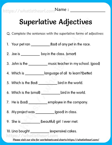 Superlative Adjective Worksheet. Adverb phrases worksheets hyperbole worksheets Web superlative adjectives change the adjective into the superlative form and fill in the blank space to make a superlative sentence.
