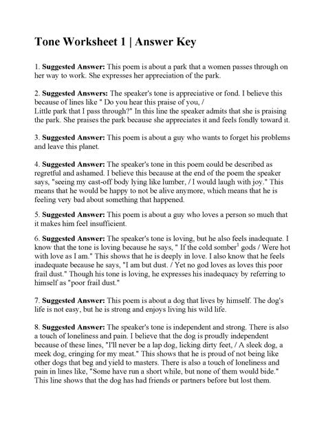 Tone Worksheet 1 Answer Key. This poem is about a. Web this is the answer key for the following worksheet: