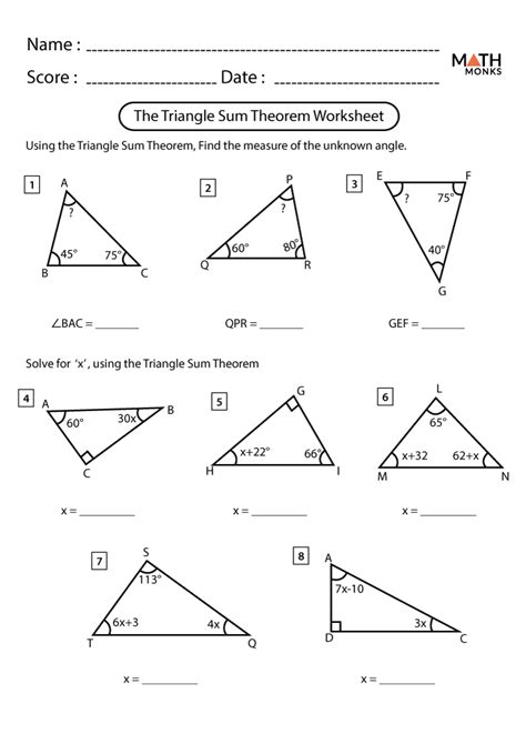 Worksheet Triangle Angle Sum Worksheet Math Worksheets For Fifth — db