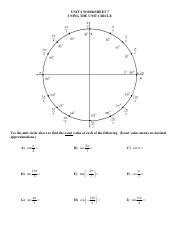 Unit 6 Worksheets 6 Using The Unit Circle