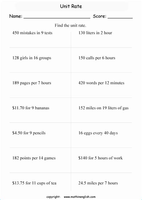 Unit Rate Worksheets Pdf. 1) 3) 5) 2) 4) 6) unit rate = unit rate = unit rate = unit rate = unit. These free unit rate worksheets will help develop mastery of unit rates.