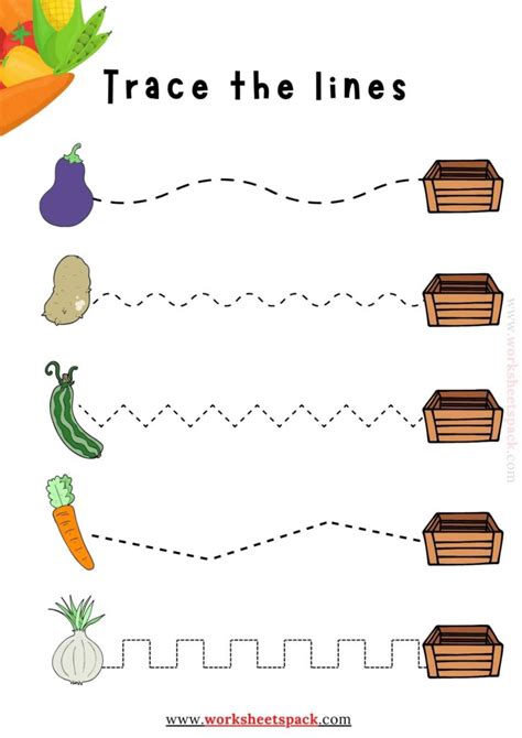 Vegetables Tracing Worksheets. Tracing and coloring fruits & Web help your students develop their fine motor skills with this set of fruits and vegetables.