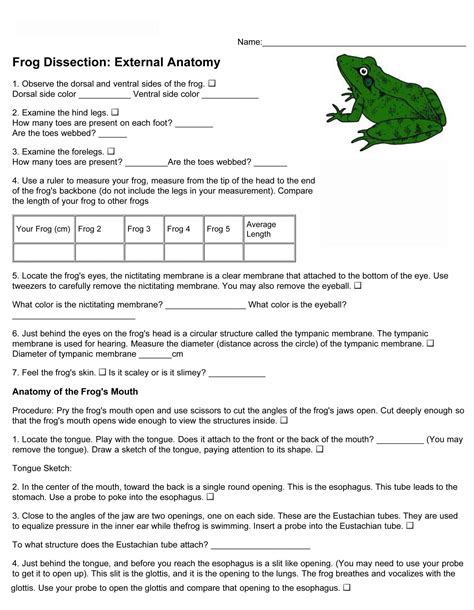 anatomy of a frog worksheet