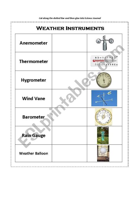 The worksheet provides vital information related to weather instruments, including their definitions and images. Measures air temperature b 4. Web weather instruments grade 2 science worksheet fill in the blanks. Someone who studies the weather is a _____. Tools used to predict weather. A prediction of what the weather will be is called a _____. Measures the amount of rain that has fallen Find and label the weather instruments & A _____ is used to measure rainfall. To acquaint the students about the weather instruments, momjunction has come up with an interesting worksheet on weather instruments. Toolsstudents have to look at the scene on the left and the numbers and then decide what weather instruments it represents (weather balloon, barometer,anemometer, thermometer, weather vane, rain gauge)students can also color in the pictures at the endthere are 2 versions of.