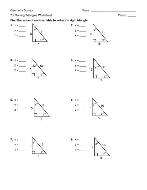 Solving Right Triangles Worksheet —