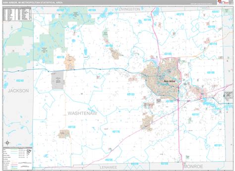 Ann Arbor Michigan Zip Code Wall Map (Red Line Style) by MarketMAPS