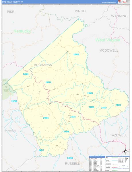 Buchanan County, VA Zip Code Wall Map Basic Style by MarketMAPS