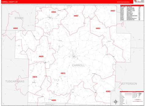 Carroll County, OH Zip Code Wall Map Red Line Style by MarketMAPS
