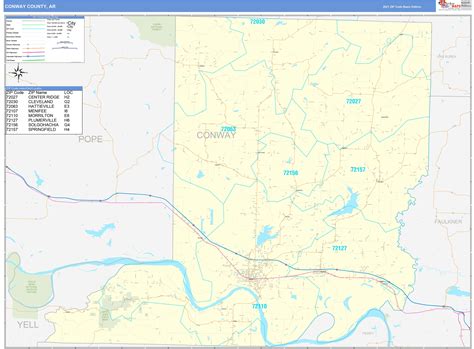 Conway County, AR Zip Code Wall Map Basic Style by MarketMAPS