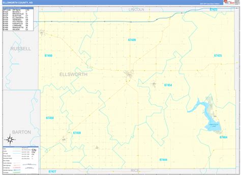 Ellsworth County, KS Zip Code Wall Map Basic Style by MarketMAPS MapSales