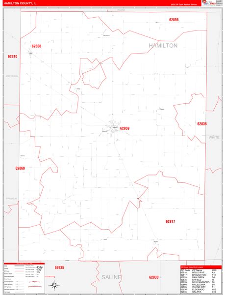 Hamilton County, IN Zip Code Wall Map Red Line Style by MarketMAPS