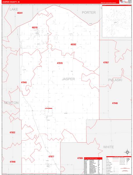 Jasper County, IA Zip Code Wall Map Red Line Style by MarketMAPS