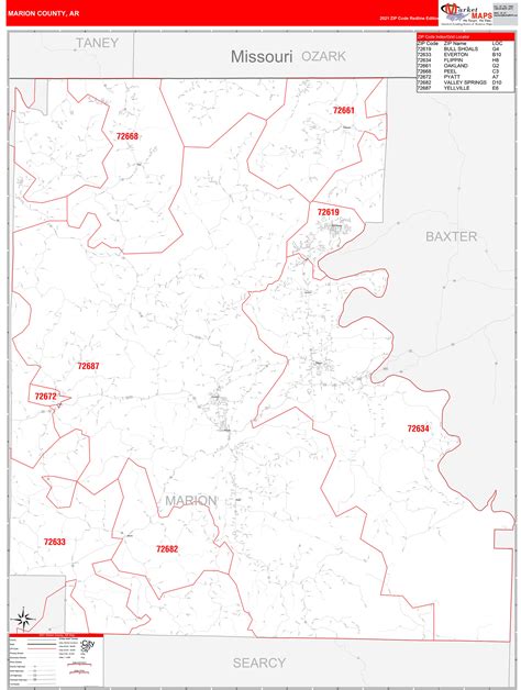 Marion County, FL Zip Code Wall Map Red Line Style by MarketMAPS MapSales