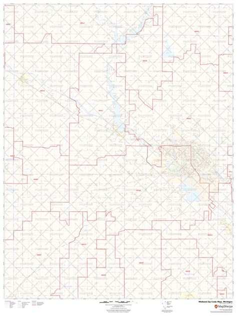 Midland County, MI Zip Code Wall Map Red Line Style by MarketMAPS