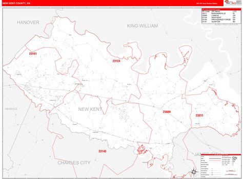 New Kent County, VA Zip Code Wall Map Red Line Style by MarketMAPS
