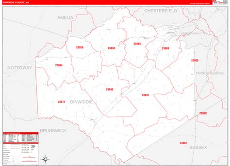Dinwiddie County, VA Zip Code Wall Map Basic Style by MarketMAPS