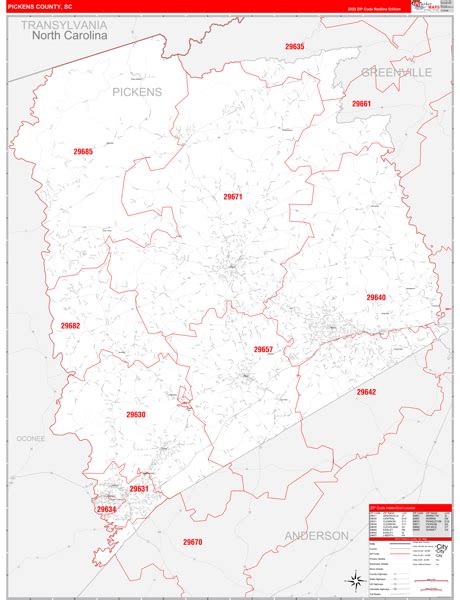 Pickens County, GA Zip Code Wall Map Red Line Style by MarketMAPS
