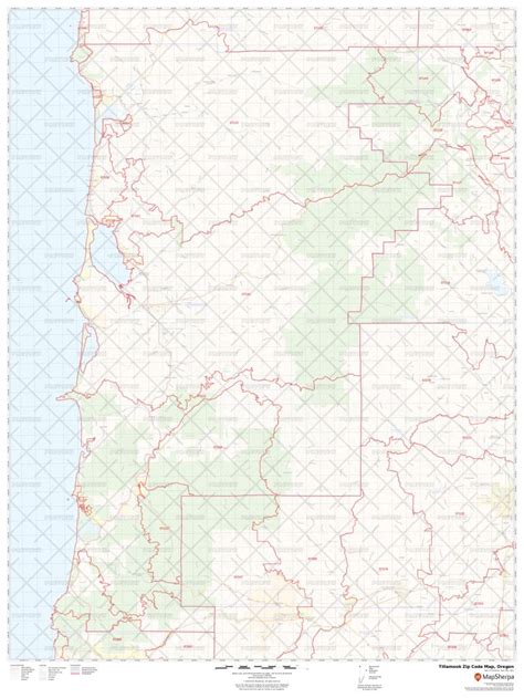Tillamook County, OR Zip Code Wall Map Red Line Style by MarketMAPS