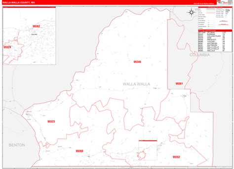 Walla Walla County, WA Zip Code Wall Map Red Line Style by MarketMAPS
