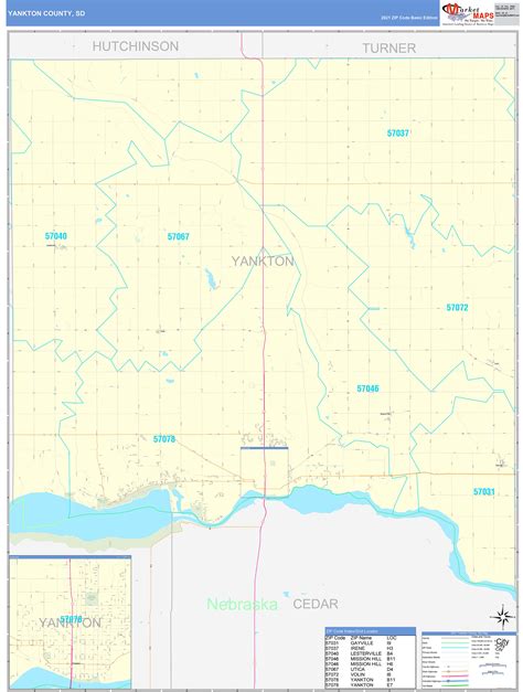 Yankton County, SD Zip Code Wall Map Basic Style by MarketMAPS