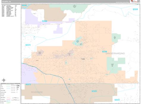 Yucaipa California Zip Code Wall Map (Red Line Style) by MarketMAPS