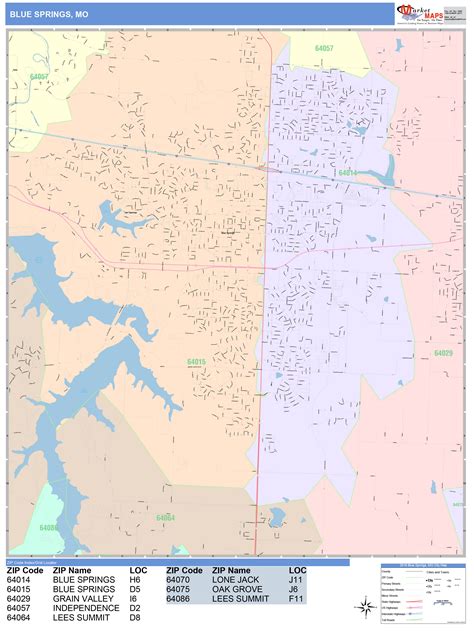 Blue Springs Missouri Zip Code Wall Map (Red Line Style) by MarketMAPS
