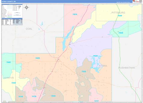 Atoka County, OK Zip Code Wall Map Red Line Style by MarketMAPS MapSales