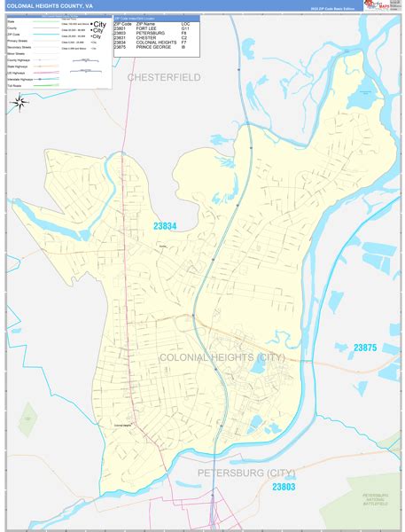 Colonial Heights County, VA Zip Code Wall Map Basic Style by MarketMAPS