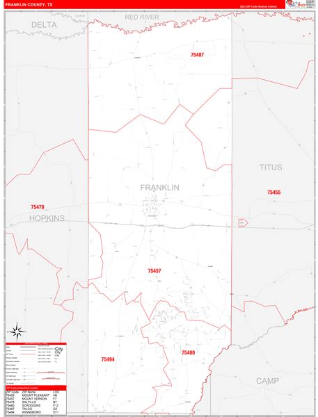 Franklin County, FL Zip Code Wall Map Red Line Style by MarketMAPS