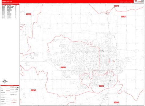 Greeley Colorado Zip Code Wall Map (Red Line Style) by MarketMAPS
