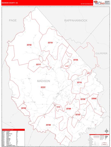 Madison County, VA Zip Code Wall Map Basic Style by MarketMAPS