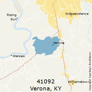 Zip Code For Verona Ky. The water area for the. 41092 has a population of 3,514.