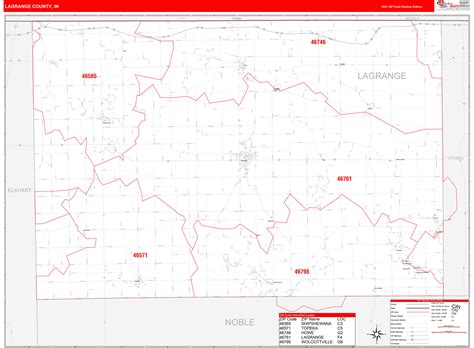 Lagrange County, IN Zip Code Wall Map Red Line Style by MarketMAPS
