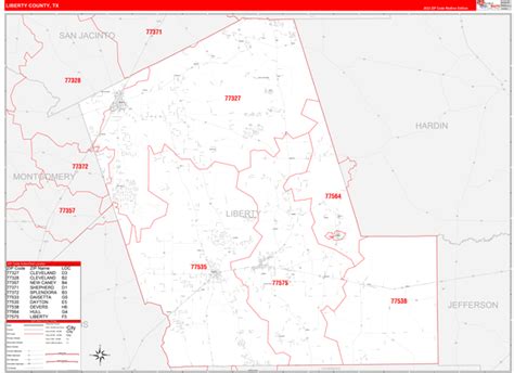 Liberty County, TX Zip Code Wall Map Basic Style by MarketMAPS MapSales