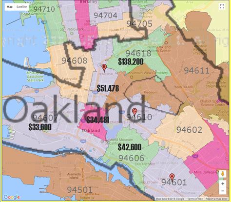 Oakland California Zip Code Wall Map (Red Line Style) by MarketMAPS