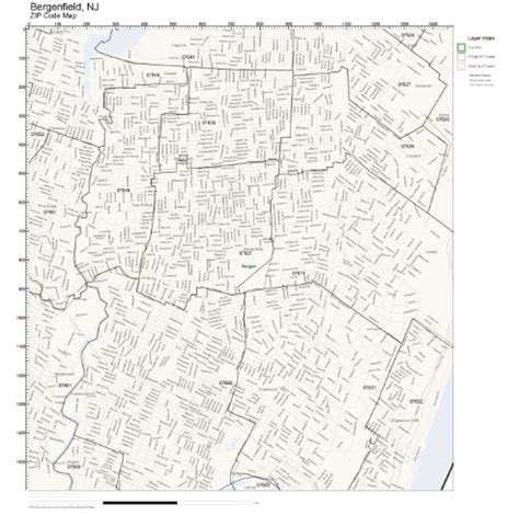 Bergen County, New Jersey Zip Code Boundary Map