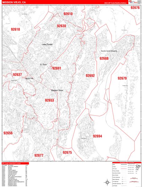 Mission Viejo California Zip Code Wall Map (Red Line Style) by